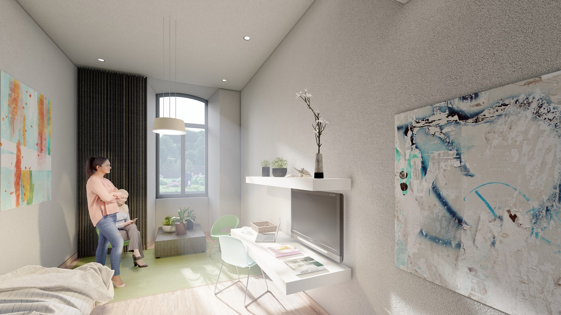 Als je de foto's van het gebouw ziet, zou je niet onmiddellijk raden dat de abdij omgetoverd wordt tot een woonzorgcentrum. Ook ouderen verdienen het om omringd te blijven door schoonheid en kwaliteit. Daarom staat design en esthetiek centraal in het ontwerp van Peter Jacobs uit Ninove.