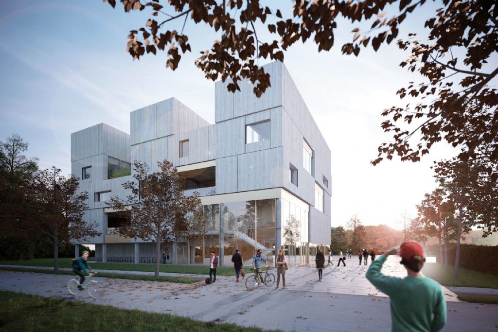 Deze situering zorgt ervoor dat het nieuwe gebouw een echte eyecatcher kan worden, met twee belangrijke voorgevels. De nieuwbouw moet een duidelijk herkenningspunt worden op de site, op menselijke schaal.