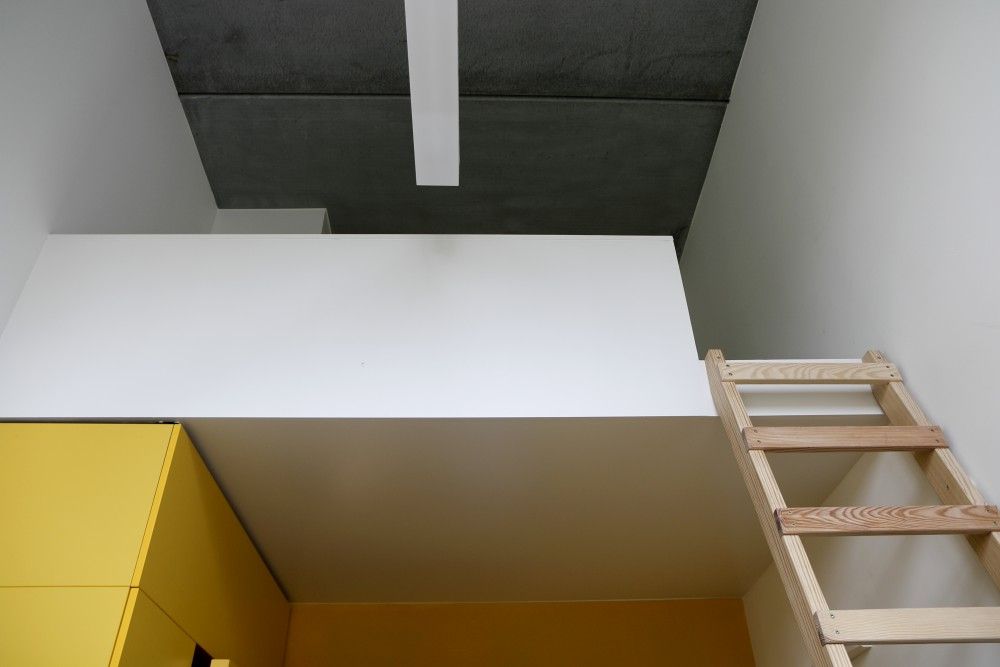 De ruime vrije hoogte op de eerste verdieping laat toe om een alternatief type slaapkamer – met hoogslaper- te integreren, terwijl de tweede en derde verdieping qua vrije hoogte juist volstaan als slaapvertrekken.
