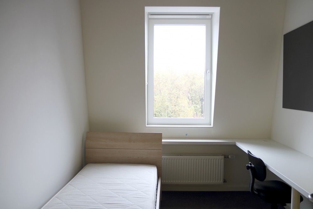Op campus Leiekant werden de bestaande gebouwen vernieuwd en uitgebreid. Het ontwerpteam plaatste het internaat in een bestaande zijvleugel van het Fort. Dat bestaat uit drie slaapverdiepingen en een open gelijkvloerse ontspanningsruimte. In de groene binnentuin vind je een nieuwe refter terug, opgevat als een open en uitnodigend paviljoen.