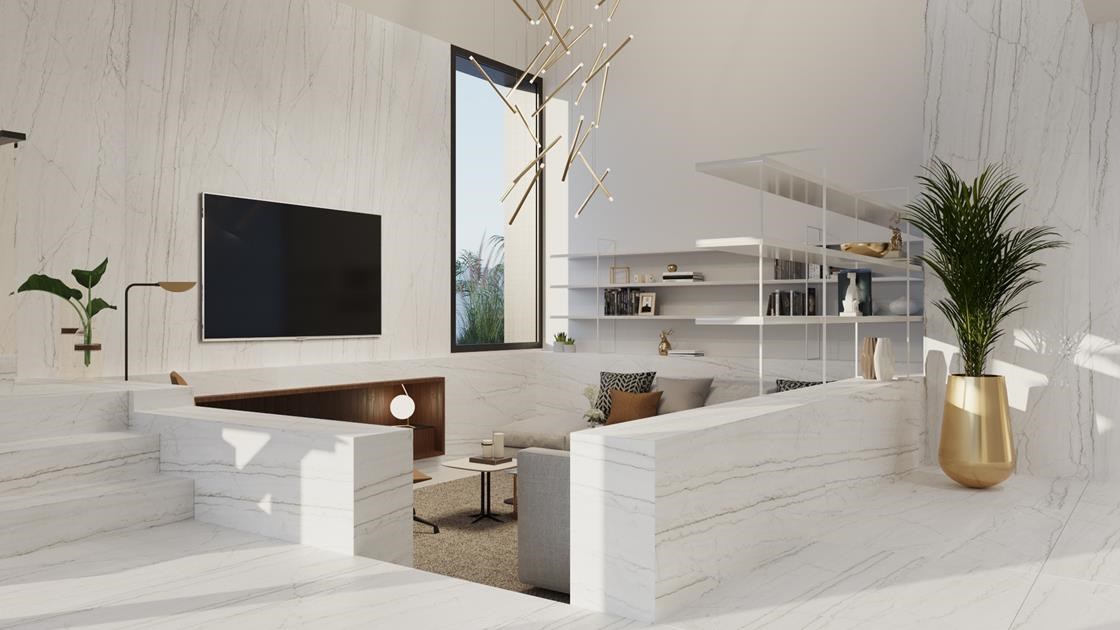 De nieuwe Dekton® Onirika-dessins dompelen je virtual realitygewijs volledig onder in een andere wereld waar marmer kwistig gebruikt wordt voor vloer-, muur- en meubelbekleding.