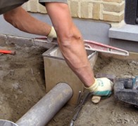 De Gallo-afvoerput kan makkelijk vastgezet worden in de stabilisé die dienst doet als ondergrond voor de bovenliggende stenen. Indien de funderingsplaat verhindert dat de Gallo niet op volledige hoogte ingebouwd kan worden (de bovenkant moet immers net onder de waterkeringslijn van de woning liggen om opstijgend vocht in de muren te voorkomen), kan hij makkelijk ingekort worden met behulp van een slijpschijf. Deze ingreep beperkt het opvangvolume echter niet. Belangrijk is wel dat de inox rooster nog past op het bijgeslepen lichaam. De afvoerput wordt aangesloten op de ondergrondse rioleringsbuizen via een kunststof buis van 110 mm diameter.