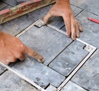 Alle stenen moeten naargelang het bestaande tegelpatroon vooraf mooi uitgelijnd en desnoods ingekort worden. Langs de zijkanten dient men ook een klein vierkant weg te slijpen, zodat het deksel met bouten in het onderliggende raamkader kan vastgedraaid worden.
