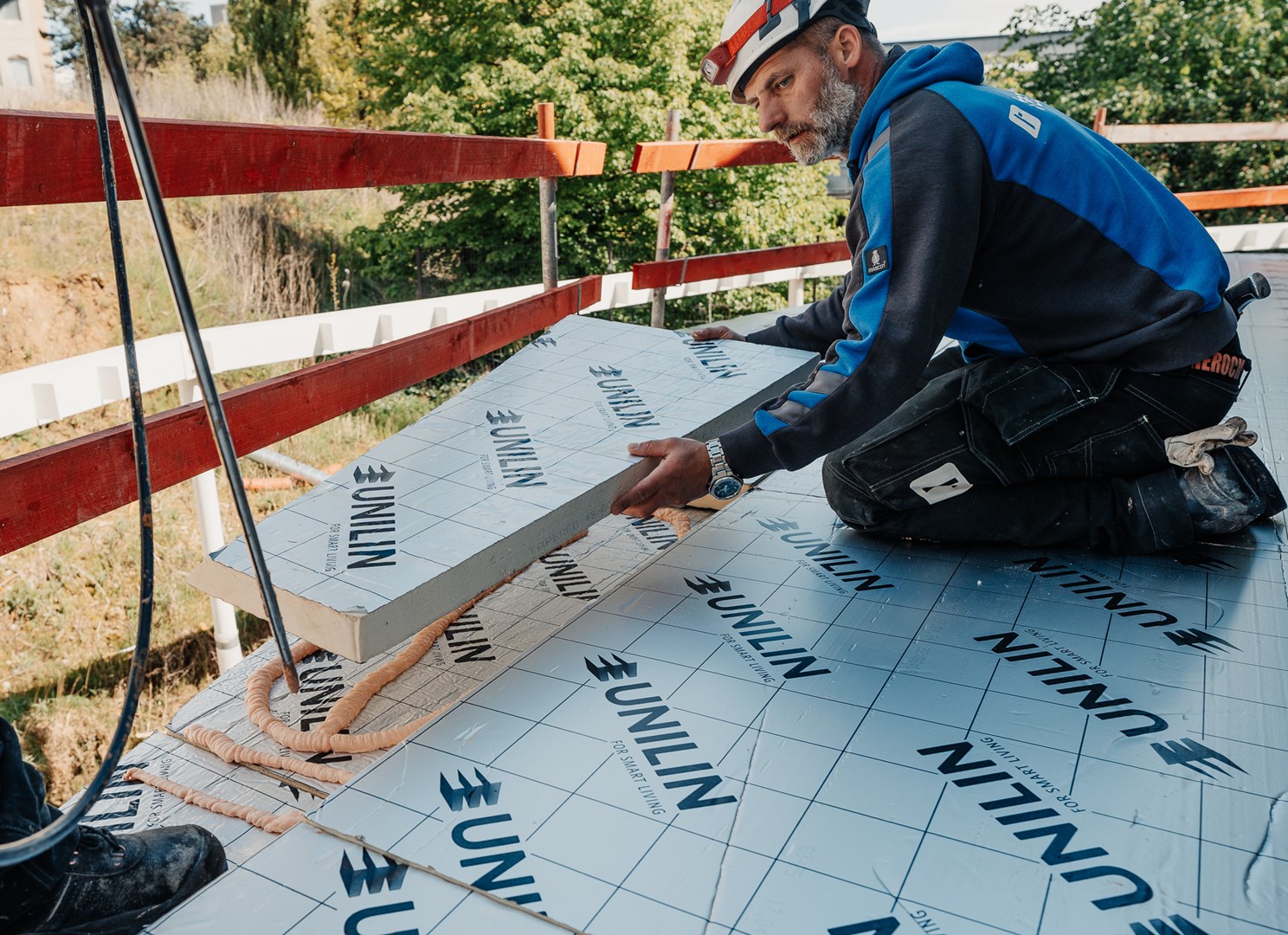 De verschillende hoekjes en kantjes aan het terras vormden een extra uitdaging voor het bouwteam. Toch verliep de plaatsing heel snel en efficiënt dankzij een duidelijk én gratis legplan van Unilin Insulation.