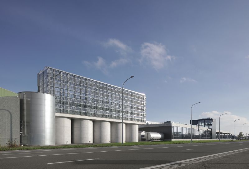 Agrotopia is een trotse, transparante sculptuur van staal en glas, die zowel zijn agrarische als zijn publieke functie onderstreept. Daarvoor is de architectuur opgebouwd uit een ranke serreconstructie die zich aftekent tegen de hemel en rust op de betonnen sokkel van de kistenloods.