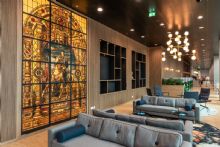 Triplaco heeft deze selectie getransformeerd tot hoogwaardig absorptieve nanogeperforeerde akoestische panelen, type N. Daarnaast werd de centrale kolom van de negen verdiepingen ‘ingekast’ met gegroefde akoestische panelen type Ds van Triplaco met een toplaag houtimitatie '1396ROOT' van Abet Laminati.