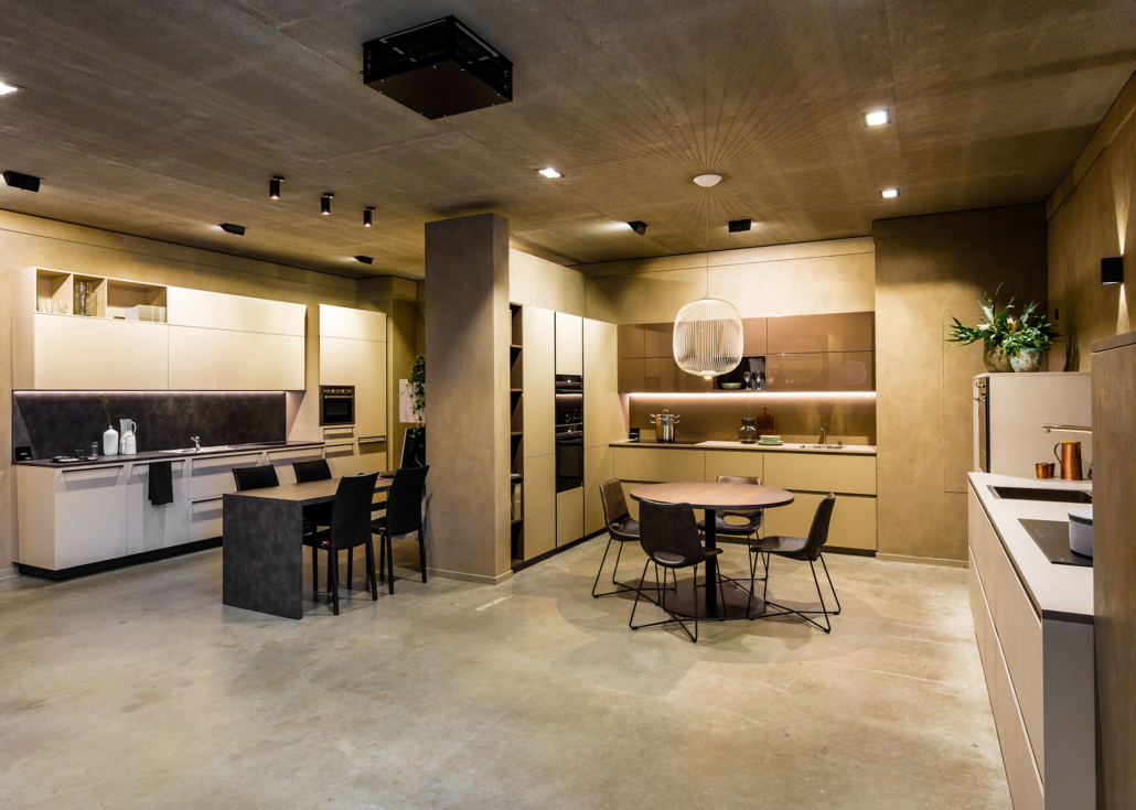 OWA RAW is direct tegen het plafond toepasbaar, of kan eenvoudig gemonteerd worden met een beproefd ophangsysteem. Het installatie- en leidingwerk kan daarbij geheel of gedeeltelijk onder het plafond worden weggewerkt, voor volledige controle over het industriële karakter van de ruimte. Uiteraard zijn spots, luidsprekers en alle andere denkbare opties en functionele maatregelen volledig te integreren in de RAW Concrete panelen.
