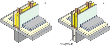 Om de massa-veer-massaresonanties te doen dalen tot onder de 50 Hz, is een brede centrale spouw nodig en moeten de platen van de spouwzijde naar de binnenzijde verplaatst worden (zie afbeelding 1b).