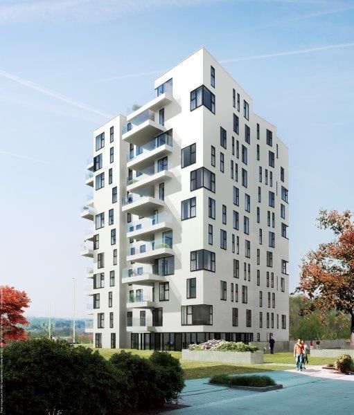 De 34 meter hoge Aleca-toren telt elf bouwlagen. De 43 wooneenheden zijn verspreid over een gelijkvloers en tien verdiepingen. Per bouwlaag zijn vier appartementen met een specifieke grootte (121,8 m², 124,9 m², 171,9 m² en 167,8 m²) gegroepeerd rondom een centrale circulatiekoker. Daarnaast biedt het gelijkvloers ook nog plaats aan een commerciële ruimte, die doorloopt tot het ondergrondse niveau. De Aleca-toren is ontworpen door CONIX RDBM Architects. “We hebben maximaal rekening gehouden met de context”, vertelt projectarchitect Nathalie Van de Walle. “De visuele connectie met de toegangsbrug naar Temse en het groene stiltegebied aan de overzijde zijn erg belangrijk, net als de band met de bestaande en nog te bouwen torens in de directe omgeving. Aleca heeft een verticaal karakter om de doorzichten vanuit de achterliggende woningen te garanderen. De terrassen en de raamopeningen variëren qua vorm en oppervlakte, zodat een dynamisch gevelbeeld ontstaat. De façade van de Aleca-toren valt niet enkel op door haar levendige vorm en inrichting, maar evenzeer door haar spierwitte uiterlijk. Alle geveldelen zijn afgewerkt met blank plaatmateriaal. De aluminiumramen zijn dan weer antracietkleurig en creëren zo een interessant contrast.”