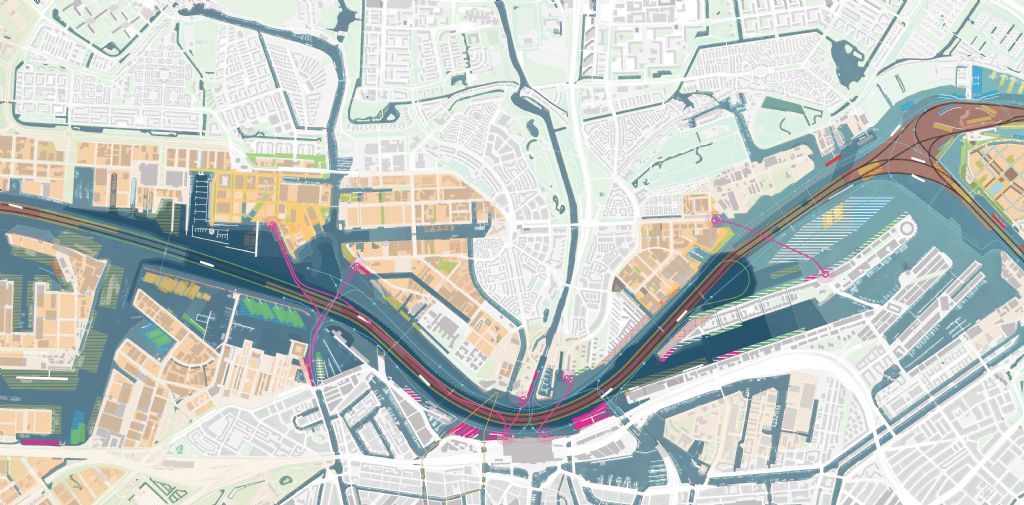 Twee gekende projecten die retroactief onder ORG Systems vallen, zijn de overkapping van de Antwerpse Ring en Broeklin, de circulaire werkwinkelwijk in Machelen ter vervanging van Uplace. Minder bekend bij ons maar veelbesproken bij onze noorderburen is het Ij in Amsterdam. Daar zorgde ORG voor een doorbraak in de aanslepende discussie tussen het stadsbestuur en het Ministerie van Infrastructuur en Waterstaat over het bouwen van bruggen dan wel tunnels over/onder het Ij in Amsterdam om zo de sterk groeiende noordelijke wijk beter te ontsluiten en te verbinden met het historisch centrum. “Na heel wat gesprekken en studies zoals flowanalyses van de verkeersstromen in de stad en op het water hebben we voorgesteld om de ring rond het historisch centrum rond te maken en de noordelijke wijk zo deel te laten uitmaken van het Amsterdam van de Gouden Eeuw. Ook twee bruggen over het Ij en een voetgangerstunnel onder het Centraal Station maken deel uit van ons ontwerpvoorstel”, aldus Alexander D’Hooghe.