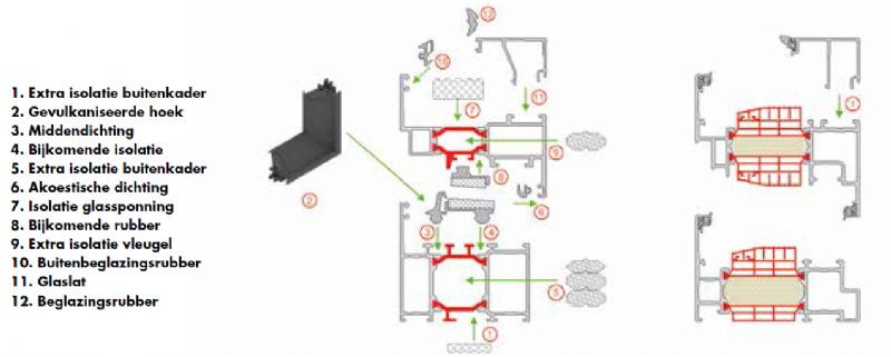 Technisch directeur Stefaan De Kegel legt uit waarom b-Quick zoveel beter is dan andere profielen. “Door gebruik te maken van de beproefde ABS-isolatie, een robuust materiaal dat bekend is van de populaire LEGO-blokjes, in combinatie met voorgemonteerde rubbers, bereiken we extra lage Uf-waarden vanaf 0,89W/m²K en een dichtheid tegen slagregen van 1.500 Pa. De ramen zijn dus hyperisolerend en voldoen aan de Europese normen en eisen van de lage-energie en passieve woningbouw. Voor een slanker uitzicht ontwikkelden we het systeem bovendien met een design dat zowel binnen als buiten helemaal vlak is.”