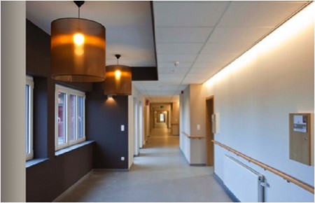 Tussen de woonfuncties en zorgfuncties maakten de ontwerpers een grote scheiding. De lokalen voor hygiëne en onderhoud en de badkamers zijn gegroepeerd en kan men bereiken via een afgesloten gang. In deze gang kan je enkel personeelsleden en bewoners, die in de badkamers verzorgd worden, tegenkomen.