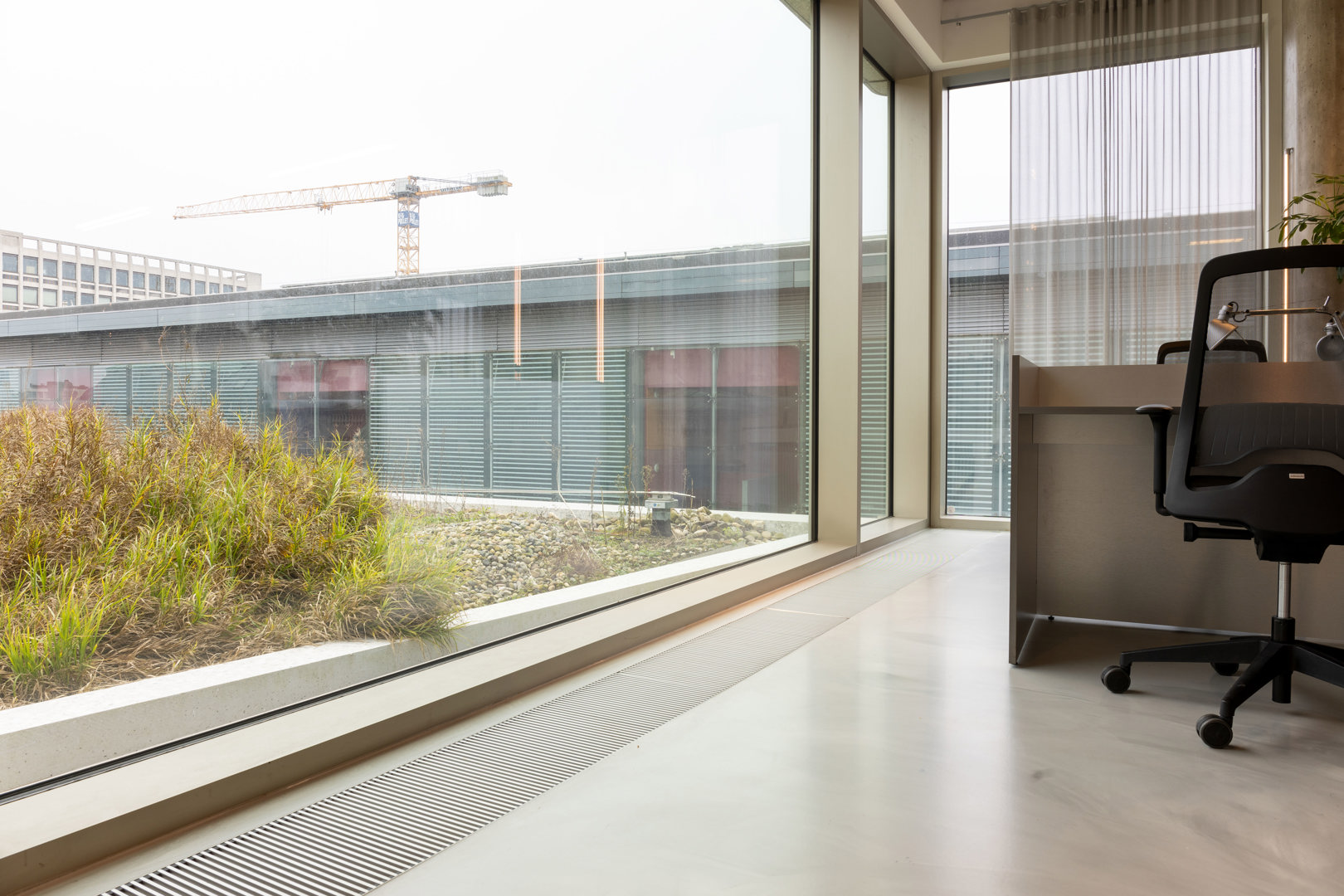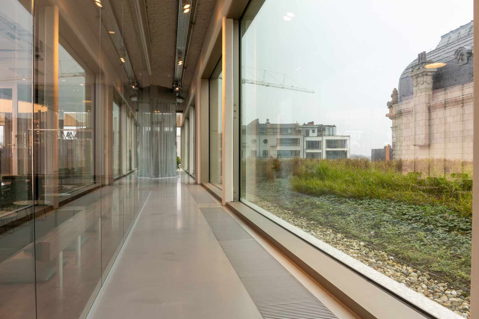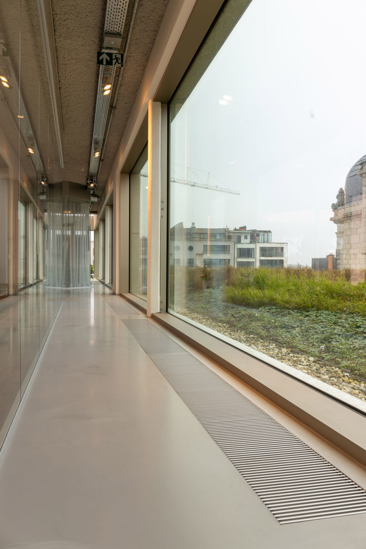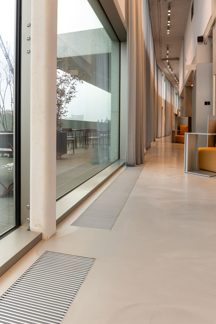 - Vloerinbouw oplossing - Clima Canal 19: volledig weggewerkt in de vloer, maar krachtig genoeg om de enorme open ruimtes met plafonds tot 8,5 meter hoog efficiënt te verwarmen en te koelen.