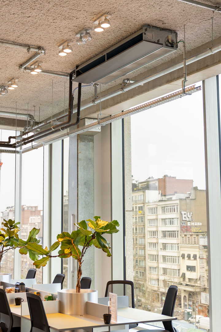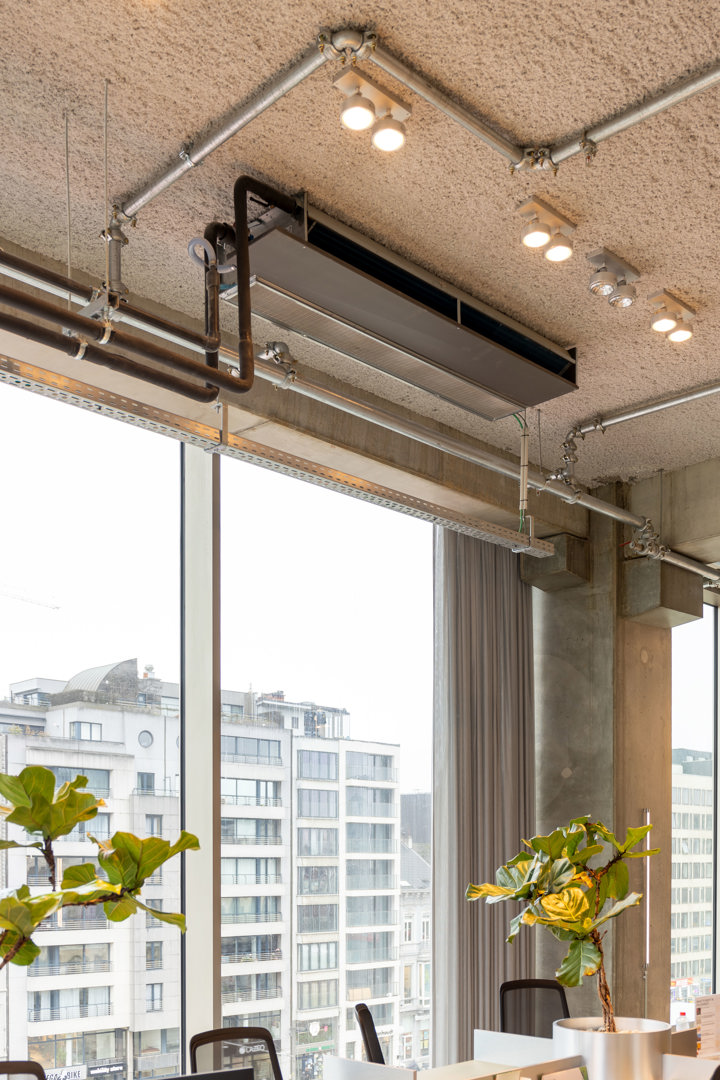 - Plafondinbouw oplossing - Briza 22: onzichtbaar geïntegreerd in het plafond, of bewust zichtbaar gelaten om een industriële look te benadrukken. Ideaal voor de grote gemeenschappelijke ruimtes met brede glaspartijen.