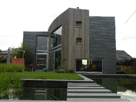 De woning is een hedendaagse woning gebouwd volgens het massief-passiefprincipe waarbij traditionele materialen (baksteen, beton,…) gecombineerd worden met de ontwerpregels voor een passiefhuis.