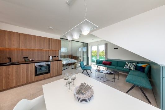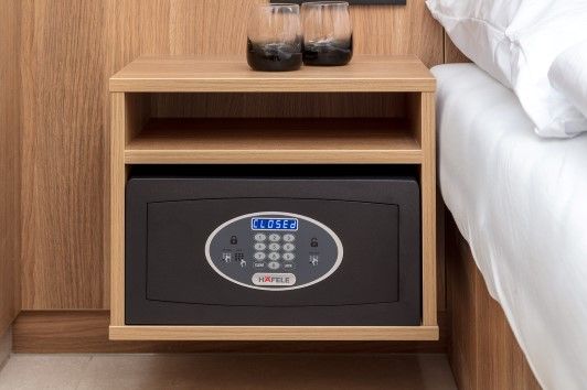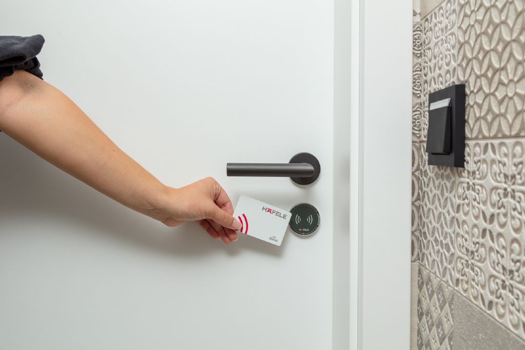 Zo communiceert het digitale toegangscontrolesysteem van Häfele, Dialock, in JopaJoma met de hotelmanagementsoftware van Protel en met de intelligente kamerbesturing van de fabrikant Gira. Ook de keukens in de appartementen zijn harmonieus vormgegeven: terwijl de hoogwaardige decoratieve afwerkingen van de meubelpanelen van FunderMax zorgen voor de visuele esthetiek van de inbouwcomponenten, zorgen innovatieve Häfele beslagoplossingen voor de passende functionaliteit binnenin.