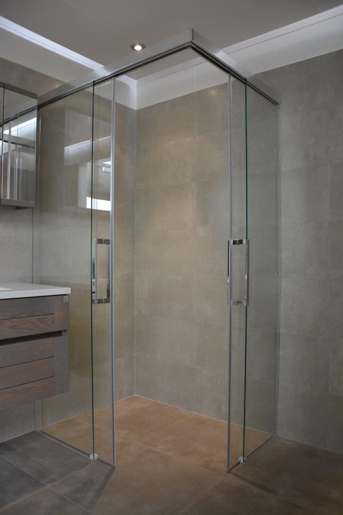 Opvallend aan Aquaconcepts nieuwste maatwerklijn Slide Concept is dat de maatschuifdeuren van de douche en de vaste panelen alleen bovenaan gemonteerd worden aan een vierkantig chroom profiel. Dit maakt dat de schuifdeuren niet alleen strak ogen, maar ook een dubbele soft close kunnen integreren waardoor de deuren nooit te hard geopend of gesloten kunnen worden. Omdat het Slide Concept een maatschuifdeur is, bestaat de optie om de douchedeur te plaatsen tussen twee muren, in een hoek en op een badrand. Tussen twee muren kan het Slide Concept twee-, drie- of vierdelig ontworpen worden, naargelang de combinatie van vaste panelen met schuivende deurpanelen. Bij een doucheopstelling in een hoek kan de schuifdeur ook geopend worden op het snijpunt van een vierdelige wandstructuur, waarbij de linker er rechter hoekinstapschuifdeur elk over een vast paneel schuiven. Verder is ook een hoekinstap mogelijk met een breed vast zijpaneel en een smaller vast zijpaneel.