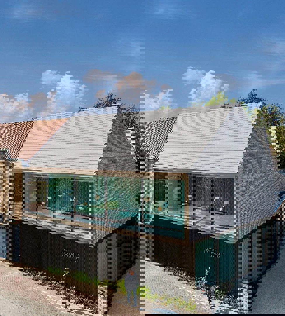 In Passendale realiseerde MARKland architecten een nieuw notariaatsgebouw met geïntegreerde woongelegenheid. Voor de dakafwerking werd gekozen voor de Koramic tegelpan Elfino in de kleur Agaatgrijs van wienerberger, een keuze die aansluit bij de architecturale ambities om een helder en zorgvuldig uitgewerkt volume te creëren.