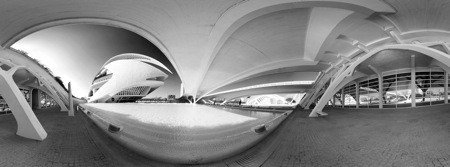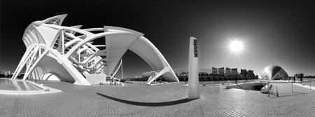 HB: Dit zijn panorama's van een ander project van architect S. Calatrava. Prachtige architectuur in Valencia. De mooie lijnen van de gebouwen in combinatie met een "opengelegde" 360°-opname geven de beelden, in mijn ogen, nog een extra cachet.