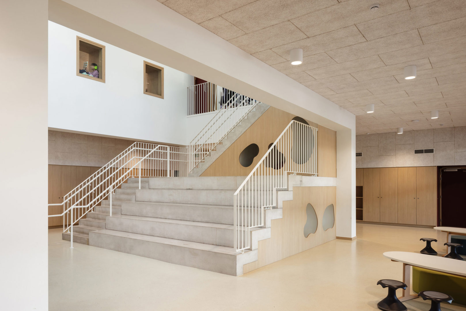 Tot slot is ook duurzaamheid integraal in het ontwerp opgenomen. Het gebouw wordt fossielvrij geklimatiseerd via een lucht-waterwarmtepomp en een centrale luchtgroep met warmterecuperatie. In combinatie met de compacte bouwvorm en doordachte organisatie resulteert dat in een energiezuinige school die klaar is voor de lange termijn. Kortom, met VONK toont Archiles architecten hoe architectuur, pedagogiek en duurzaamheid elkaar kunnen versterken in een helder en robuust schoolgebouw.