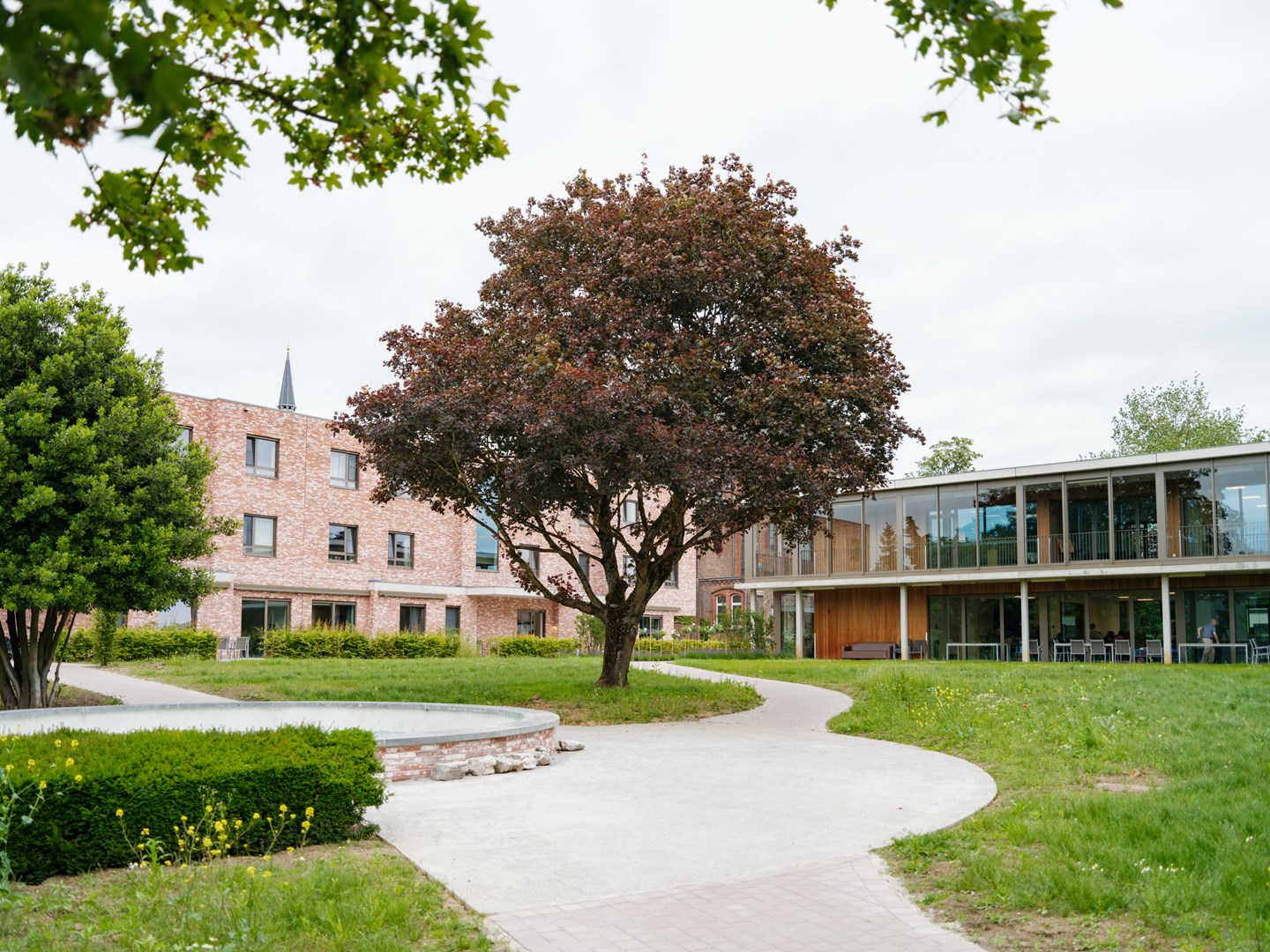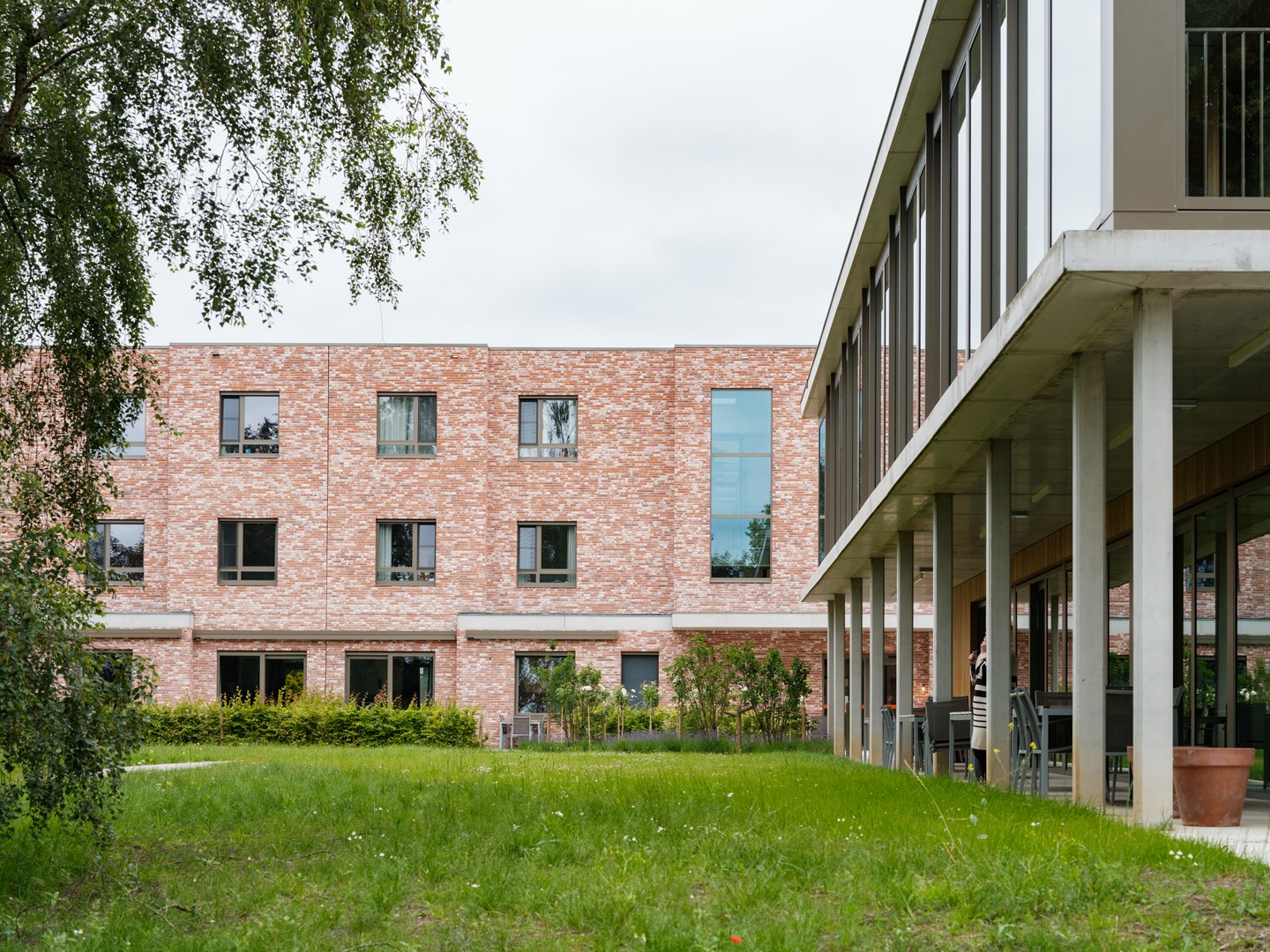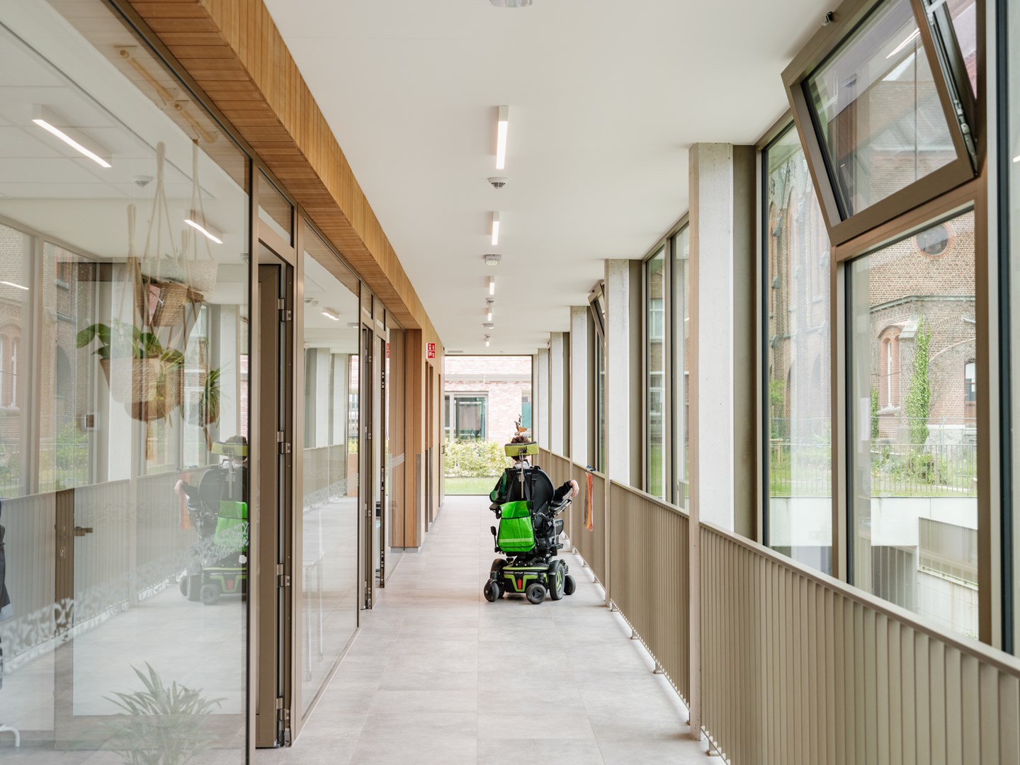 De omringende groene omgeving vormt een van de belangrijkste kwaliteiten van de site in Overijse. Daarom wordt er in de residenties, het dagactiviteitencentrum en de polyvalente ruimte ingezet op binnen- en buitenruimtes die gericht zijn naar de buitenomgeving. Zo verhogen de ontwerpers het oriëntatiegevoel en creëren ze een link met de buitenwereld.