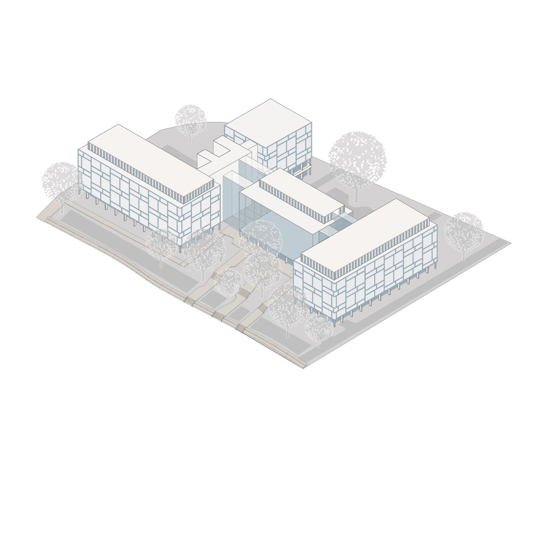 Aanvullend maakte het ook een nauwkeurige analyse van de energieprestaties van de gevel zodat het de bestaande betonnen gevelelementen optimaal kon hergebruiken. Op die manier behield het bureau naar eigen zeggen de bestaande architecturale kwaliteiten van het gebouw en gaf het de architectuur een energetische update. In het gevelaanzicht van het gebouw wordt de rationele structuur maximaal behouden. Het nieuwe patroon in de ramen maakt een link tussen de verschillende verdiepingen en vormt een extra laag in de uitstraling van de gevels.