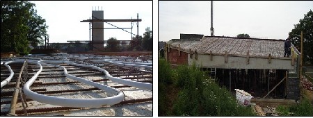 Davy Stroobants greep de bouw van z’n eigen woning aan om de experimenteren met nieuwe materialen en toepassingen. Toen Stroobants het ontwerp voor z’n duurzame woning maakte, werd betonkernactivering nog maar nauwelijks toegepast in de utiliteitsbouw, laat staan in nieuwe woningen. De productie van prefab-vloerelementen voor betonkernactivering kwam in België en Nederland geleidelijk op gang. Toch wist Stroobants al het een en het ander over dit revolutionaire verwarmings- en koelingsprincipe: “Ik wist dat de buizen in de betonstructuur geplaatst werden en dat het de bedoeling was om de thermische massa van je gebouw functioneel te gaan gebruiken. ‘En als het werkt voor kantoren, werkt het ook voor woningen’ redeneerde ik. Intussen woon ik twee jaar in m’n zelf ontworpen woning, en het concept blijkt goed te functioneren in combinatie met het vloerverwarmingssysteem. Het is aangesloten op een warmtepomp met CO2-sondes. Om het huis te verwarmen moet de temperatuur van het water ongeveer 25 graden bedragen.”