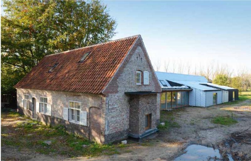 Een boerderij uit 1798 die op de Erfgoedlijst staat renoveren en deze daarenboven voorzien van een aanbouw in een landbouwzone waar complexe regelgevingen gelden… Het is op het eerste gezicht geen geschenk dat je als architect van Stedenbouw krijgt. En toch is het een kolfje naar de hand van architect Wim Goes. “Ik geloof effectief dat je als architect op een helende manier met gebouwen kan omgaan”, zegt Goes. “Zo heb ik de buitenkant van de boerderij volledig intact gehouden en wit gekalkt. Ook voor de nieuwe aanbouw heb ik eigenlijk ‘louter’ voortgebouwd op hetgeen reeds aanwezig was. Al heb ik daarvoor wel heel inventieve technieken gebruikt.”