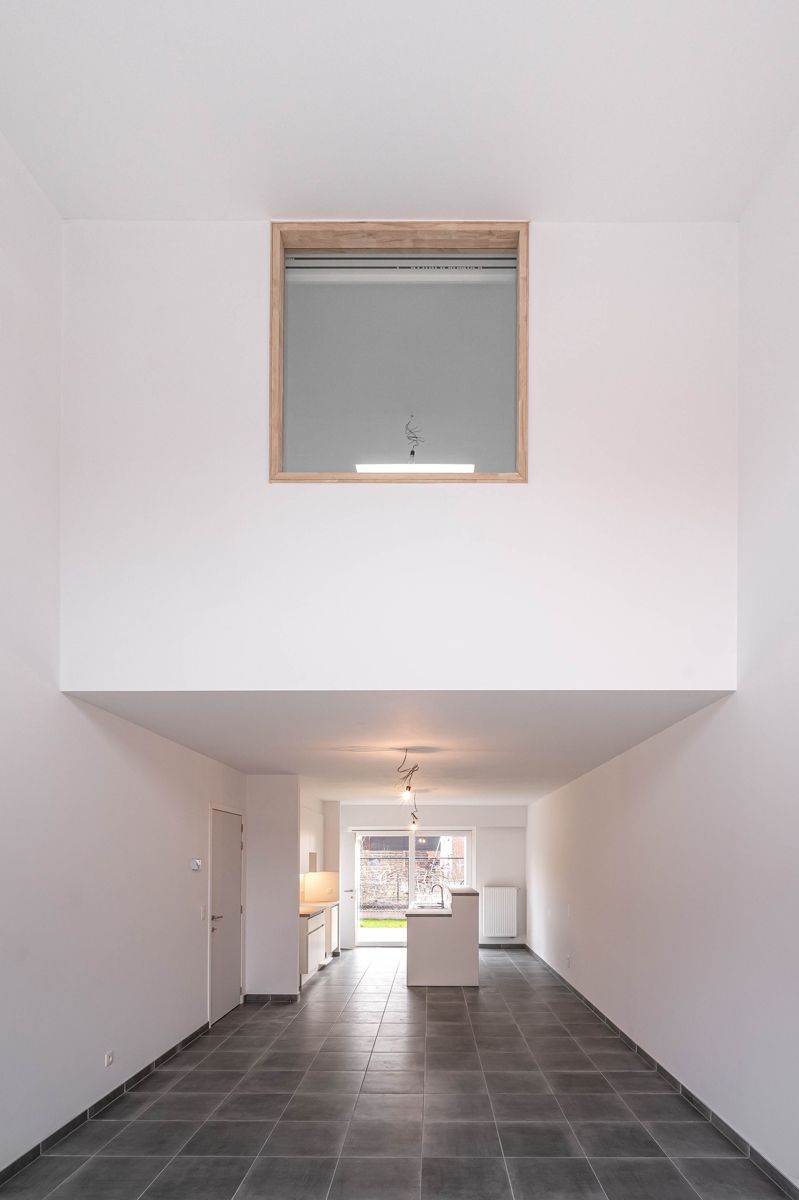 De leefruimte van de huurwoningen is dubbelhoog met een binnenraam naar één van de slaapkamers wat een extra ruimtelijkheid met zich meebrengt voor de woningen. De huurwoningen zijn zowel aan de voor-als aan de achterzijde voorzien van een compacte buitenruimte. Bij de koopwoningen is er naast een tuin aan de zijkant ook een royaal terras op de verdieping voorzien met een mooi uitzicht op de ganse wijk.
