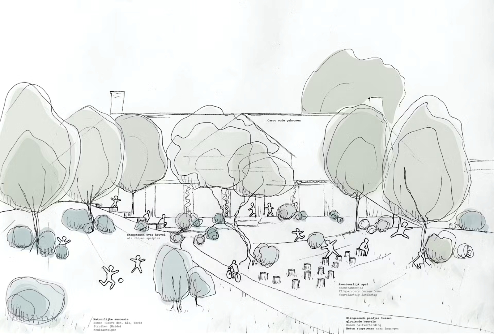 De landschappelijke ingrepen van Kris Schurmans versterken die visie. Door het aanplanten van bomen, het gebruik van natuurlijke materialen en het creëren van zones voor spel, rust en ontmoeting, ontstaat een duurzame leer- en leefomgeving. De heraanleg weerspiegelt de pedagogische vernieuwing van de school, waarin groen onderwijs centraal staat.