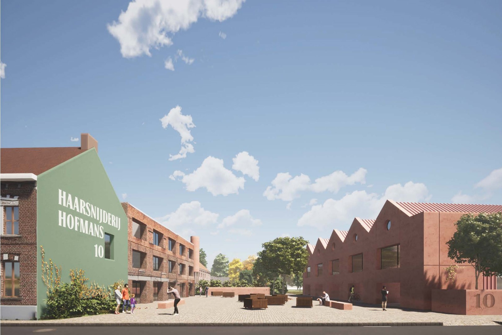 De voormalige Haarsnijderij Hofmans in Lebbeke wordt omgevormd tot een plek waar wonen en nevenfuncties samenkomen rond een semipublieke buitenruimte. Architectslab benadert de site in de Heizijdestraat niet als een standaard verkaveling, maar als een omgevingsontwikkeling waarbij de industriële historiek de drager is. Het project zet in op een erfgoed-evocatie om het ambacht van de haarsnijderij visueel aanwezig te houden op de site. Door de oorspronkelijke gebouwen als vertrekpunt te nemen, blijft de identiteit van de fabriek bewaard voor de buurt. De integratie van verschillende functies zorgt ervoor dat de site opnieuw een actieve rol krijgt in de omgeving.