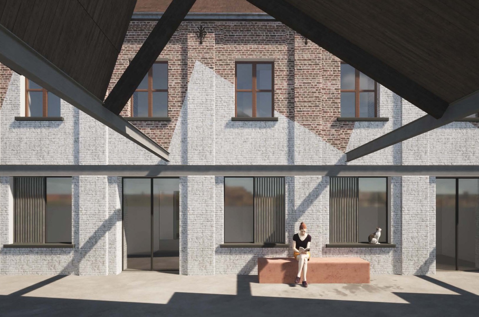 Het karakter van de plek wordt bepaald door de bakstenen volumes die sinds 2009 als bouwkundig erfgoed zijn gecategoriseerd. Binnen de bestaande muren van de fabriek worden dertien lofts en woningen ondergebracht, aangevuld met vijf nieuwbouwwoningen op het terrein. Op de begane grond is ruimte gereserveerd voor ateliers, kantoren of horeca om de sociale interactie op het centrale plein te stimuleren. Zo ontstaat een leeffabriek waarbij de oorspronkelijke morfologie van de gebouwen de indeling van de nieuwe woningen dicteert. De organisatie van deze volumes zorgt voor een natuurlijke overgang tussen de private woonunits en de gedeelde ruimtes.