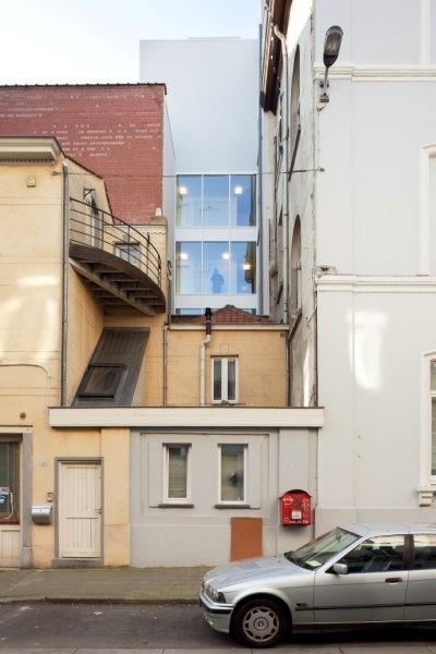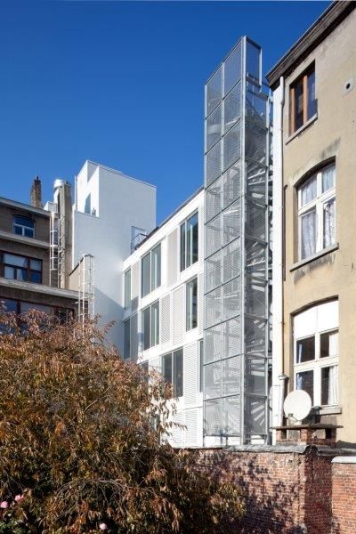 De belangrijkste uitdaging in dit project was de integratie van een 1200m² groot programma op een klassiek bouwperceel van een voormalig ‘hotel de maitre’. “Dat heeft geresulteerd in een enorm dichte bebouwing en een compacte uitwerking. Wel kwam dit alles de energetische aspecten ten goede aangezien het eveneens een uitdaging was om een gebouw te ontwerp conform de passiefstandaard.”