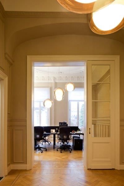 William Froidmont van Architectslab legt uit: “De BBL-kantoren zijn opgevat als een ‘open huis’. Op diverse plaatsen bevinden zich vergaderzalen en ontmoetingsruimtes voor zowel interne als externe activiteiten rond de BBL-thema’s. Tussen het bestaande volume van het herenhuis en de nieuwe achterbouw wordt er een centrale knoop geplaatst die het volledige organigram oplost door middel van een verticale circulatie (lift, trap en sanitaire voorzieningen). Deze knoop regelt de ‘dispatching’ over de verschillende plateaus,kantoren en vergaderzalen in beide volumes.”
