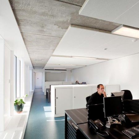 - Zware massieve tussenvloeren en ruwbouw ter bevordering van de inertie van het gebouw