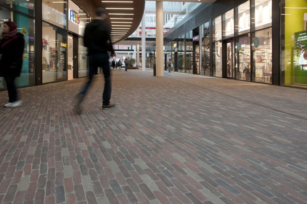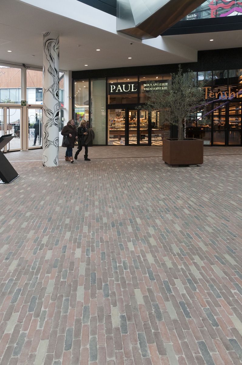 De historische context van de locatie was bepalend voor het gebruik van kleiklinkers. Belangrijk hierbij was het waarborgen van zowel een industrieel karakter als een stedelijke vrijblijvende uitstraling. Verder vereist het commerciële project een essentieel gebruikscomfort, zowel binnen als buiten. De subtiele kleurvariaties in de bestrating bevorderen de warme, aangename en gezellige sfeer die noodzakelijk is. De roodbruine tinten van de SeptimA Kastanje en Mahonie kleiklinker vormen hiervoor de basis, terwijl de grijze SeptimA Taupe en Olijf de dynamiek en levendigheid bepalen.