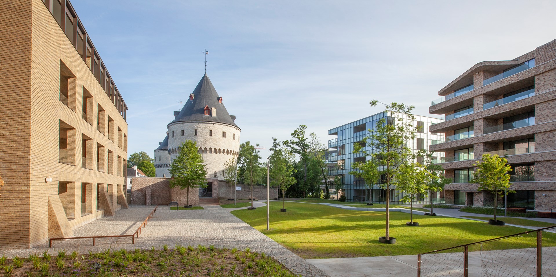 In de schaduw van de Broeltorens in Kortrijk is zopas een bijzonder woonproject opgeleverd van de hand van Lens°ass architecten, getekend in opdracht van Immogra. One Broel bestaat uit vier unieke gebouwen, allemaal met de ogen gericht op een groene oase en met een binnengebied opgetrokken richting de Broeltorens. “Het project bevindt zich naast het icoon van Kortrijk. Er diende dan ook heel goed rekening te worden gehouden met de context en hoe het project zich zou kunnen inbedden in zijn omgeving", klinkt het bij de ontwerpers.