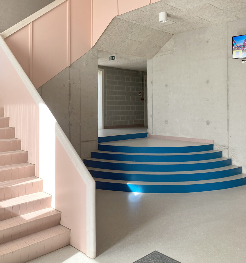 De meeste klaslokalen zijn gegroepeerd rond een ruime centrale gang, met trappen aan de uiteinden. Deze ruimte kan ingezet worden als uitbreiding van de klaslokalen, maar ook als expositieruimte of als dynamische leer- en werkplek. Speelse kleuraccenten in het interieur ondersteunen de oriƫntatie. Tijdens het bezoek geven Dirk Fredricx (De Architectengroep) en Dieter Beyens (HIVSET) een inkijk in het traject van ontwerp, bouw en gebruik. Ontdek het schoolgebouw met zijn leesbare structuur en doordacht kleurgebruik tijdens de rondleiding op woensdag 11 maart. Meer info vind je op de website van AR-TUR.