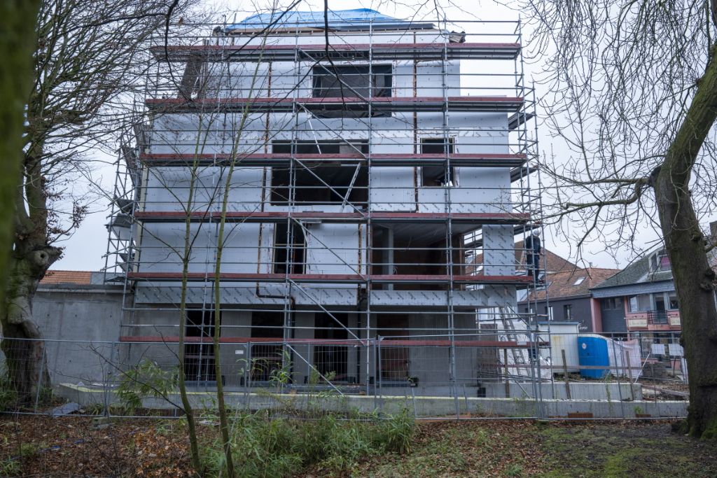 In Varsenare werken architectenbureau a[RT] en aannemer Tom Vansteelandt momenteel samen aan een stijlvolle meergezinswoning. De architect ging voor een bijzonder ontwerp, de aannemer is momenteel volop bezig met de gevelisolatie. “We kozen bewust voor Utherm Wall A omdat de isolatie zo beter scoort dan het verplichte minimum voor middelhoge gebouwen.”
