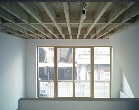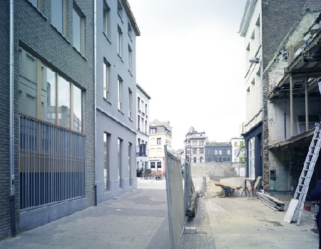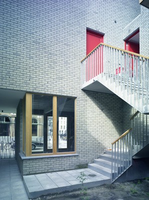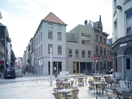 Bart Bomans en Johan de Coster vormden een historisch hoekpand in het Antwerpse schipperskwartier om tot drie woningen met een gelijkvloerse winkelruimte. De grootste uitdaging hierbij was natuurlijk om de structuur van het oude hoekpand te verzoenen met de hedendaagse woonnormen. Die verzoening werd bereikt door de strikte perceelverdeling van het oude hoekpand aan te passen. Op de eerste verdieping werd de oorspronkelijke perceelverdeling behouden. Daar bevinden zich drie zelfstandige woningen met elk een eigen buitenruimte. De winkelruimte op het gelijkvloers neemt echter twee percelen in beslag en het terras van één woning bevindt zich op het dak van een perceel op het gelijkvloers. De drie woningen worden met elkaar verbonden via een gemeenschappelijke binnentuin.