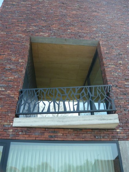 Men heeft via een opening in het gebouw een overdekt terras gecreëerd met balkon aan de straatzijde