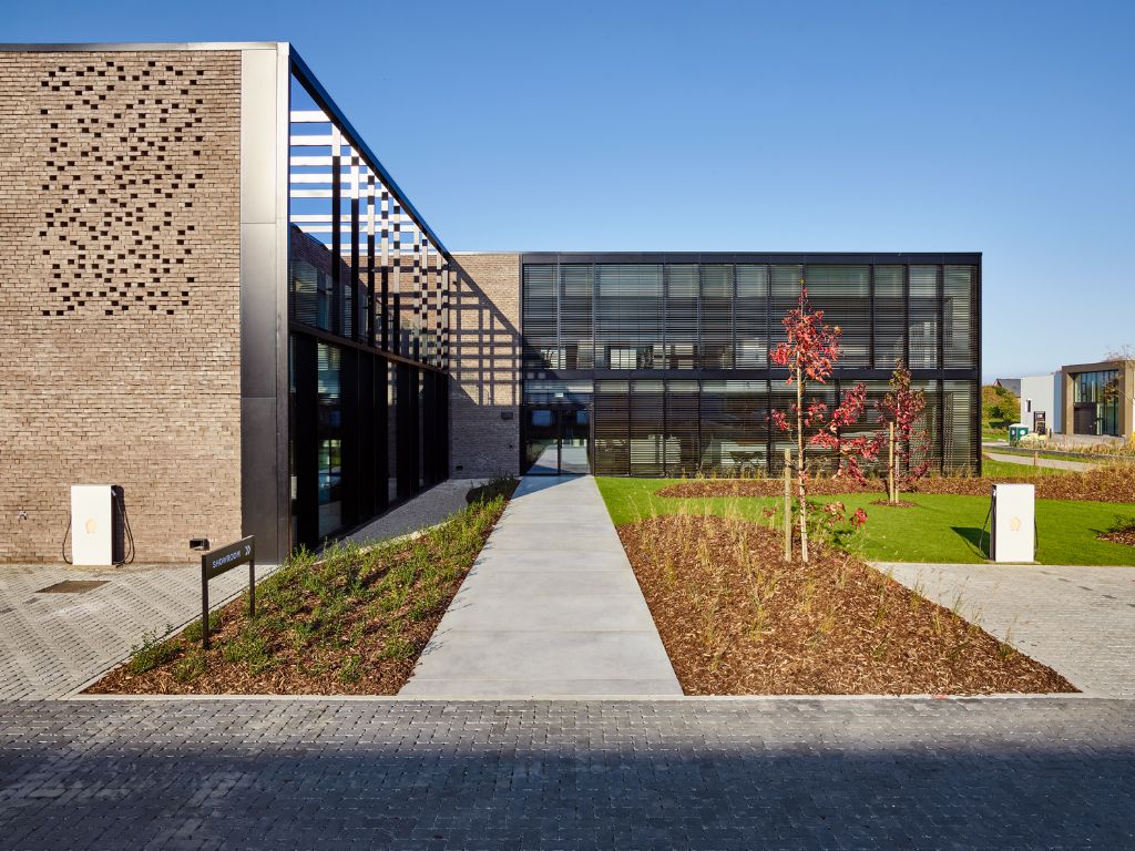 Buiten is, naast de ruime parking, een laadpalenpark voorzien voor elektrische wagens.