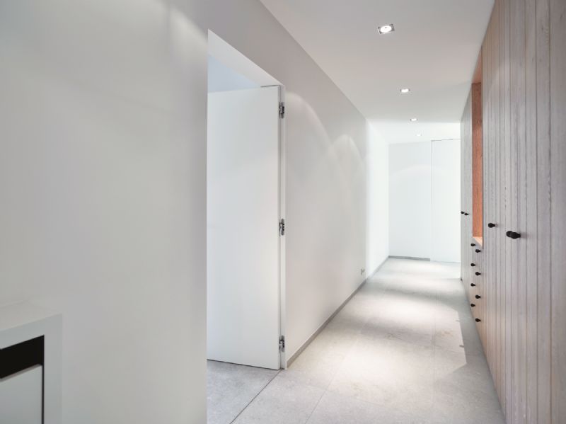 Van deurlijsten is er dus al langer geen sprake meer, en scharnieren en geleiders zijn niet langer zichtbaar. Restten nog de plinten als laatste obstakel voor een perfect strakke wand. Maar daar heeft ARLU een oplossing voor. De onzichtbare plinten zijn verkrijgbaar in 2 modellen: een dunne kleefplint en een verzonken plint waartegen gepleisterd kan worden. Achteraan zijn die voorzien van lijmgroeven en een zwaluwstaart profilering voor een goede hechting. Een laag primer zorgt ervoor dat je die rechtstreeks met de muur mee kan schilderen.