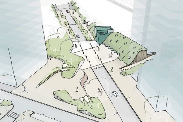Toch vormt de locatie ook een belangrijke uitdaging. De ondergrondse garages worden namelijk vlak boven de Noord-Zuidverbinding ingeplant. Hiermee houdt de architect rekening door bijvoorbeeld te kiezen voor lichte bouwmaterialen. Het behoeft ten slotte geen uitleg dat ook voor de vorm van het groendak de nodige speciale technieken nodig zullen zijn.