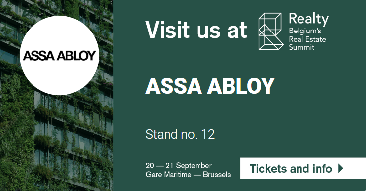 ASSA ABLOY Opening Solutions neemt deel aan Realty, de grootste beurs voor vastgoedprofessionals in België, op 20 en 21 september in Brussel. De specialist in veiligheidsoplossingen en toegangscontrole zal er zijn oplossingen voorstellen aan een publiek dat bestaat uit de belangrijkste publieke en private ontwikkelaars, investeerders en beleidsadviseurs die ons land rijk is.