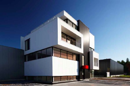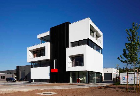 Het industrieterrein van Zolder en Lummen heeft een nieuwe blikvanger. EFC, een bedrijf met twintig jaar ervaring en talrijke Europese referenties in lucht- en vloeistoffiltratie, investeert voortdurend in innovatie en het opleiden van een vakkundig team. Het afgeleefde, onopvallende bedrijfsgebouw stond dus in schril contrast met de bedrijfsgeest. Op een terrein aan de oprit naar de E313 ontwierp Atech architecten een markant nieuw kantoorgebouw dat hun dynamiek zou visualiseren. Mathieu Gijbels bracht de constructie tot een goed einde.