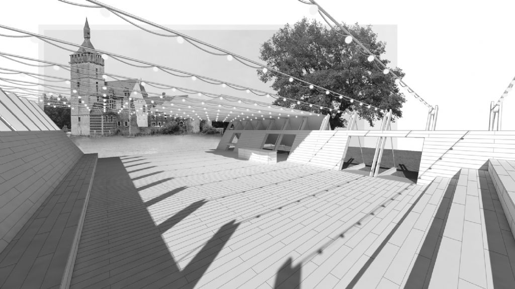 Het Japanse bureau werd door de organisatoren uitgenodigd om “nieuw werk te creëren dat reflecteert op de historische context van de site.” Atelier Bow-Wow ontwierp een podium dat ze zelf omschrijven als “een houten box op de oever van het meer". De pulserende muziek zal de eenvoudige vorm activeren en vormt zo een antipode met het verstilde kasteel en dito landschap.