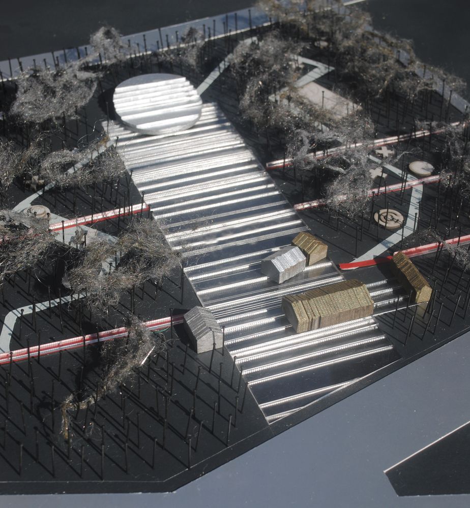 De belangrijkste elementen van het ontwerp zijn het stedelijk theater, de zogenaamde ‘culturele knoop’ en het bos. Het ‘stedelijk theater’ werkt als een lange, continue programmatische stip die open ruimte voorziet voor alle soorten evenementen. De grenzen ervan zijn gedefinieerd door een ‘culturele knoop’ van oude en nieuwe culturele gebouwen en een amfitheater.