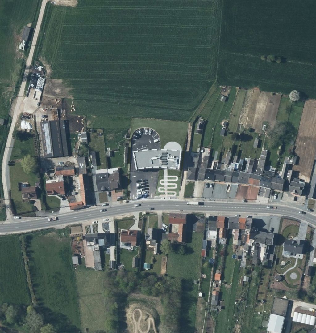 De projectsite ligt aan een drukke gewestweg in een agrarische omgeving. Omdat de rest van de weg is geflankeerd door een huizenrij stelde de architect voor om het politiekantoor op te tillen zodat het landschap erachter opnieuw zichtbaar wordt. Vervolgens werd het landschap doorgetrokken tot aan de straat, met eronder de logistieke ruimten en erbovenop de publiekstoegang, en de straat naar het landschap, als parkeerruimte voor bezoekers, ersoneelsvoertuigen en dienstvoertuigen.
