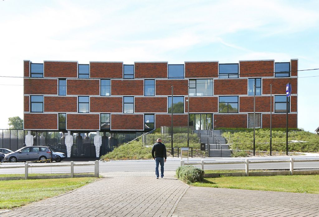 Om die reden is het gebouw zelf licht gekromd. Zo ontstaat een welkomstgebaar naar bezoekers aan de straatzijde. Aan de zijde van het landschap biedt het gebouw een grote diversiteit aan zichten in verschillende richtingen. Intern zijn alle ruimtes geschakeld rond de traphal, een grote vide die licht brengt centraal in het gebouw en zicht biedt naar het achterliggende landschap.